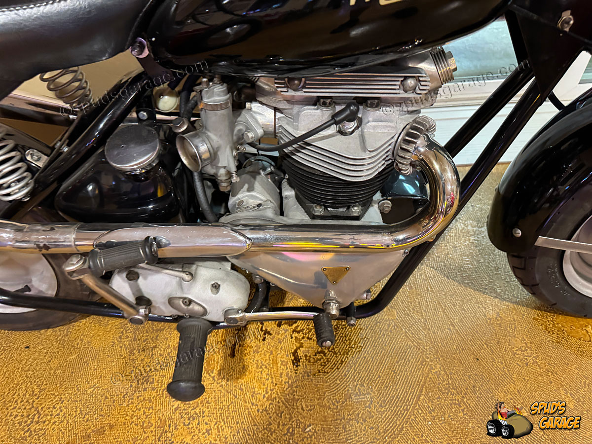 "TR6" Indicates the Triumph 650cc parallel-twin